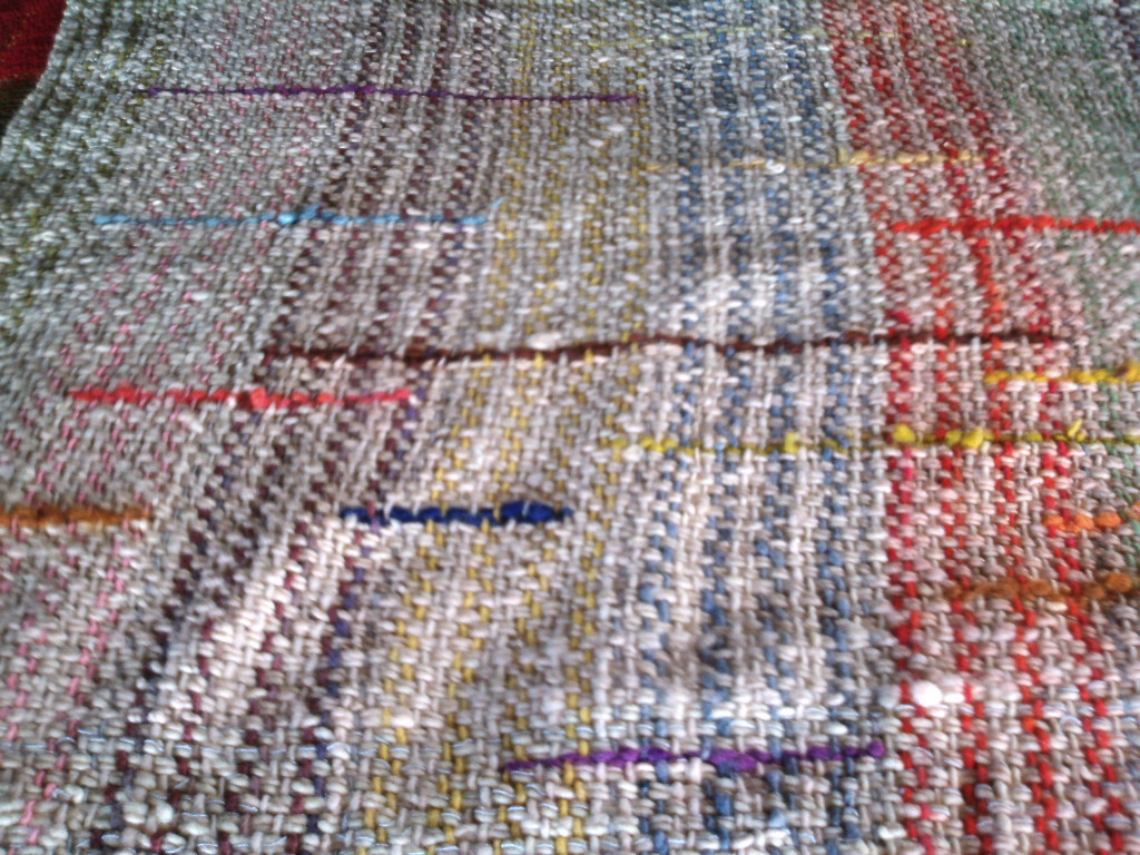 | Almoda tecida num tear de prego, usando lã industrial. |